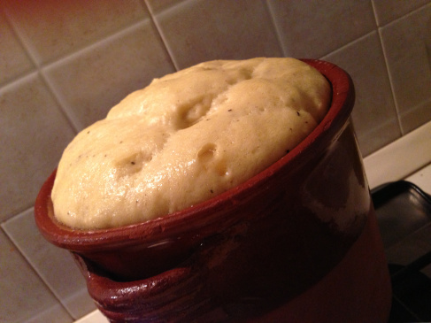 Trascorso questo tempo la massa dovrà essere raddoppiata di volume, se non fosse accaduto lasciate ancora lievitare fino a che la massa abbia raggiunto il bordo dello stampo. ( vedi foto sotto)